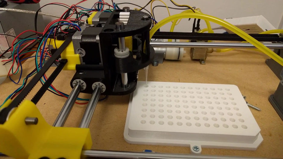 Based on a ubiquitous 3D printer controller board (Ramps 1.4) and using custom firmware. Made from mostly 3D printed parts designed, coded, fabricated, tested and delivered in only 3 months.